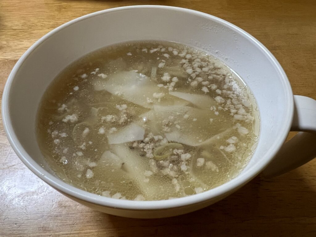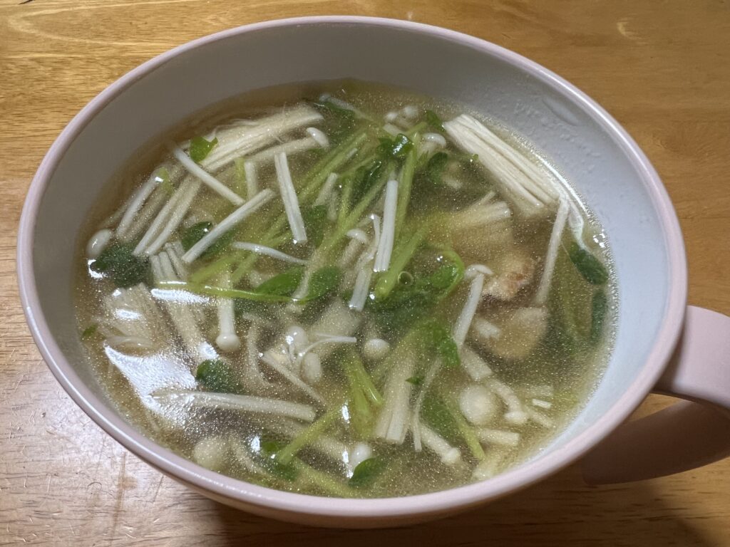 【レシピ】食物繊維が豊富!!豆苗と豚肉のスープ