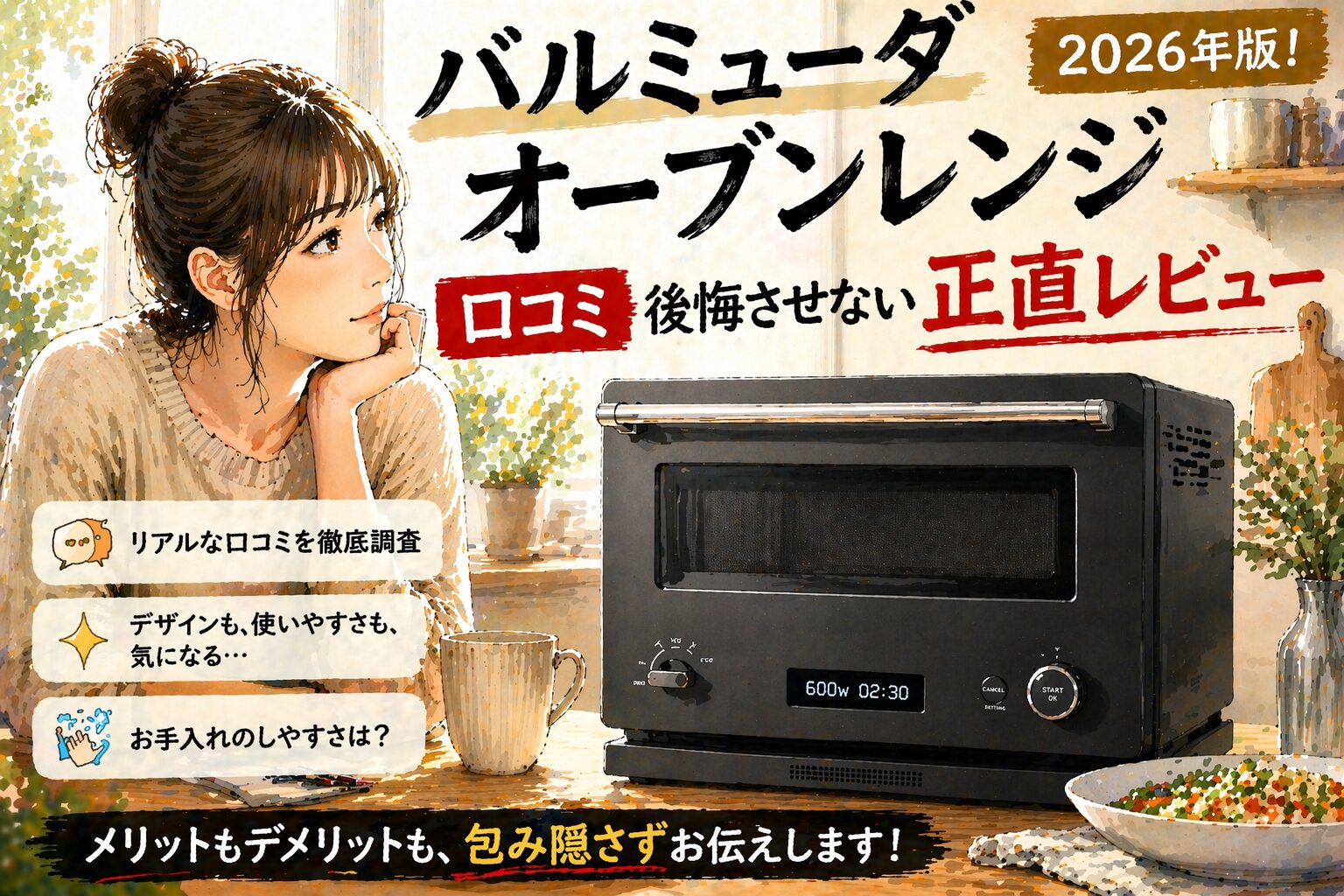 今回は、バルミューダオーブンレンジの口コミを2026年版の視点から詳しく解説しました。