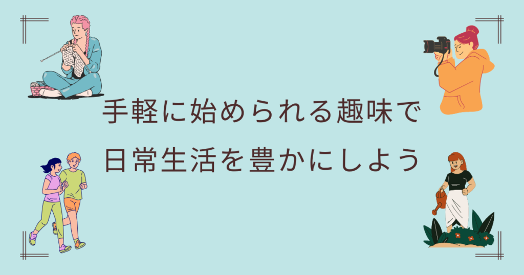 忙しい毎日を送る中で、自分の時間を持つことはとても大切です。しかし、新しいことを始めるのは少しハードルが高いと感じる方も多いのではないでしょうか。 そこで今回は、「手軽に始められる趣味」をテーマに、初めての方でも気軽に取り入れられる趣味を... -