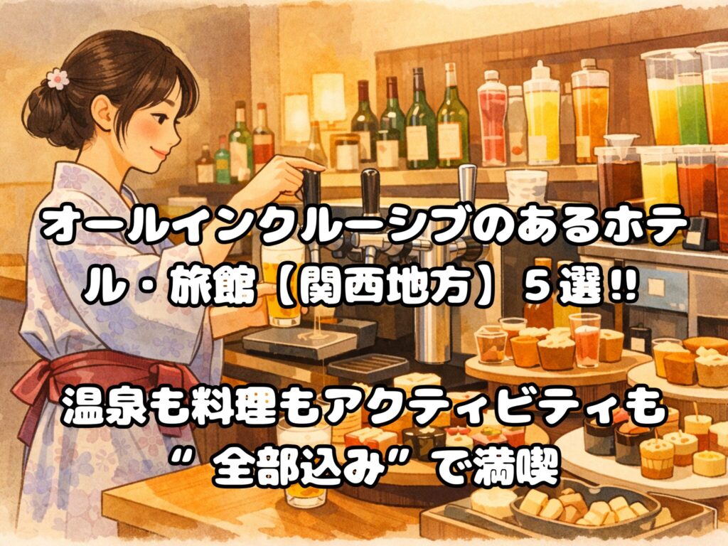 お悩み 温泉も料理もアクティビティも“全部込み”で満喫したい そんなときにぴったりなのが「オールインクルーシブ」スタイルのホテルです。関西で“お金を気にせず滞在したい”なら、オールインクルーシブ宿がぴったり。 夕食・朝食・ドリンク・ラウンジ利用...