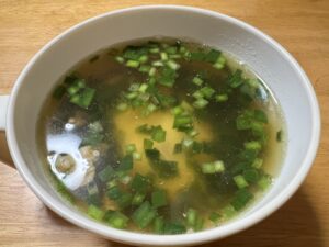今回は、水の量が少し少なかったため、具材がメインのスープとなりました。