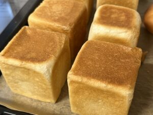 8.2倍にふくらんだら、180℃に余熱をしたオーブンで15分程度焼き、表面がこんがりとしたきつね色になり、全体がふっくらと膨らんでいれば完成。