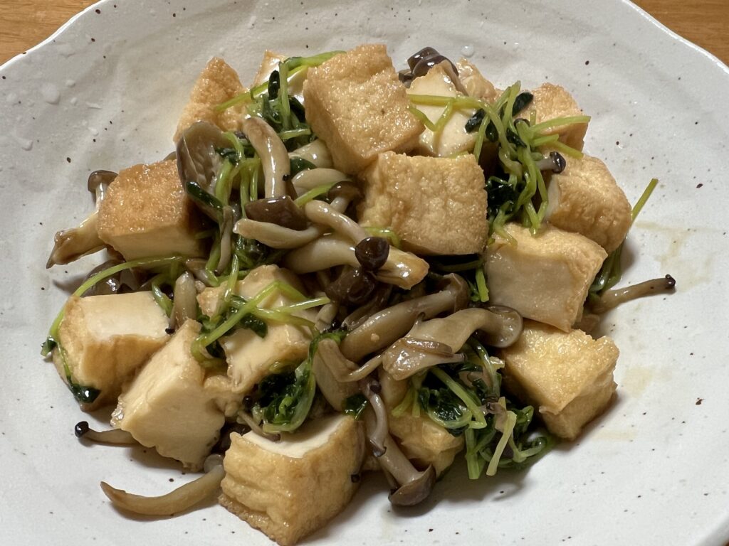 【レシピ】簡単節約料理!!厚揚げと豆苗の炒め物